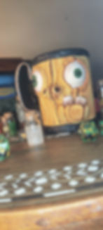 Scroll down to find our SHOP, full of handmade, kiln fired pottery creations (and other bits and bobs.) If you have a custom shaped mug in mind, let us know, we love a challenge! Check out our PORTFOLIO page for ideas. Or, if you just like free stuff, check out our FREE STUFF page for Mimic Stats Sheets, a TTRPG playable map of The Monster Inn and more...